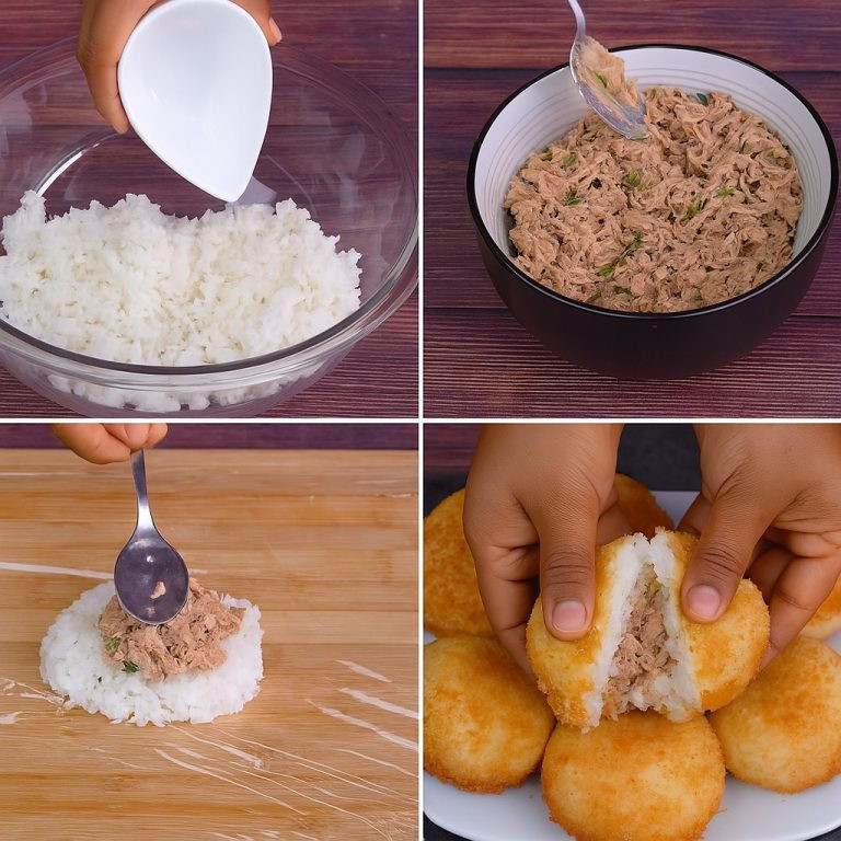 Kulki ryżowe nadziewane tuńczykiem to idealny przepis na wykorzystanie resztek ugotowanego ryżu i przekształcenie go w pyszne, chrupiące i zaskakująco proste danie. Te domowe krokiety łączą łagodny smak ryżu z kremowym nadzieniem z tuńczyka i majonezu, a wszystko to w złocistej panierce. Idealnie nadają się na przystawkę, do lunchboxa, a nawet jako danie główne, podawane z sałatką lub podsmażonymi warzywami.