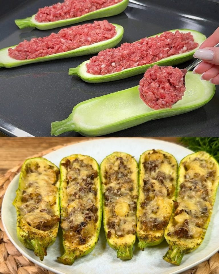 Ten przepis na faszerowaną cukinię to smaczne i sycące danie, idealne na kolację lub jako dodatek. W skład dania wchodzą delikatne połówki cukinii nadziewane pysznym połączeniem mielonego mięsa, warzyw, grzybów, ananasa i sera, tworząc pyszne połączenie smaku wytrawnego i słodkiego. Posypane parmezanem i ugotowane do perfekcji, danie z pewnością zrobi wrażenie!